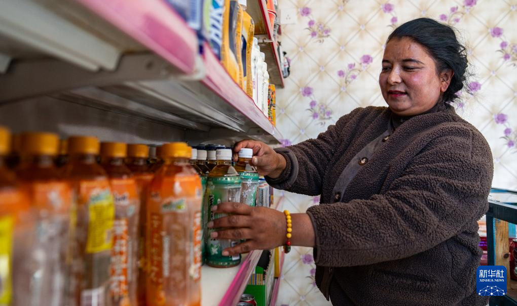 12月15日,一名達曼新村的婦女在自家商店里整理貨架。新華社記者 丁增尼達 攝 ??