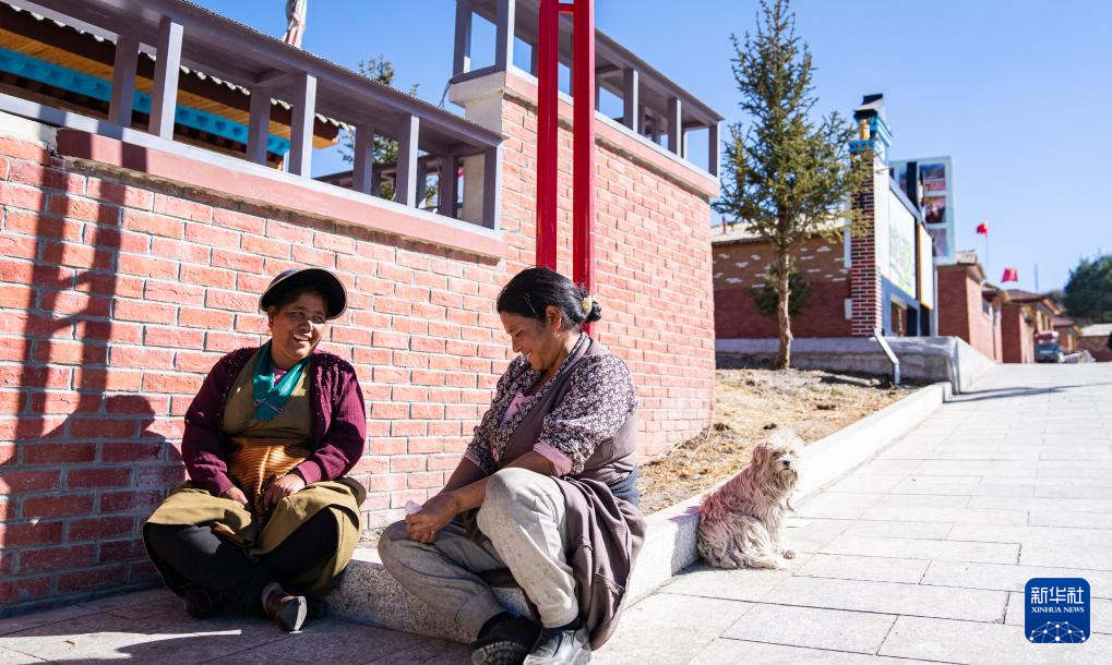 12月15日,達曼新村的婦女坐在家門口聊天。新華社記者 丁增尼達 攝 ??