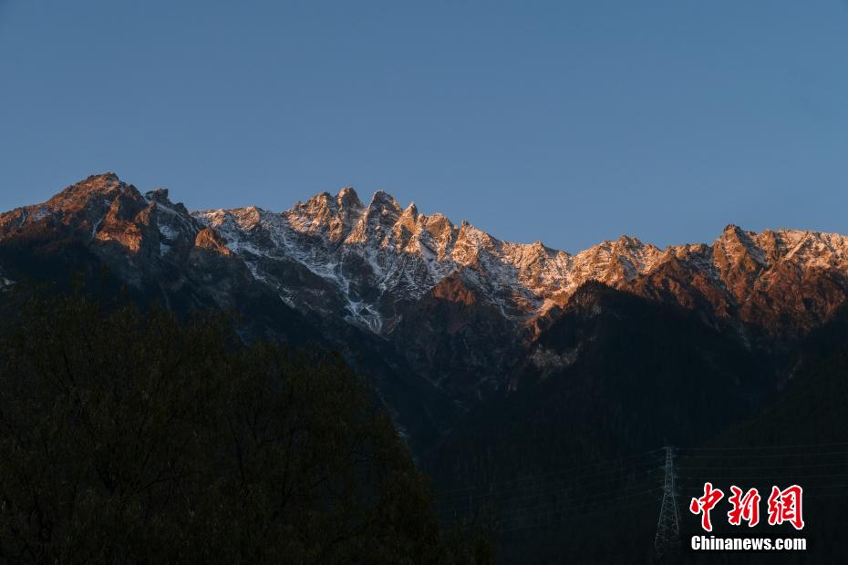 西藏自治區(qū)林芝市波密縣高山綿延、河流縱橫,擁有青藏高原最大的冰川聚集地,縣域境內(nèi)冰川超過2000座,被譽(yù)為“冰川之鄉(xiāng)”。圖為12月14日,金色的夕陽照在波密縣城周邊的雪山頂上。中新社記者 江飛波 攝