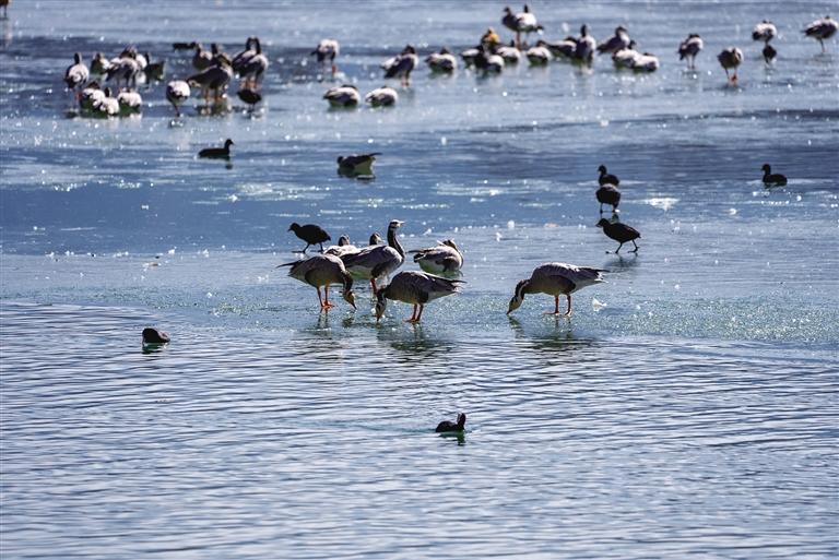 黑頸鶴,作為國家一級保護動物,其數(shù)量的增加尤為令人欣喜。它們身姿優(yōu)雅,在濕地中翩翩起舞,宛如大自然的精靈。而斑頭雁和赤麻鴨也成群結(jié)隊地在水中暢游,歡快的叫聲回蕩在空中,為濕地增添了無限的生機與活力。