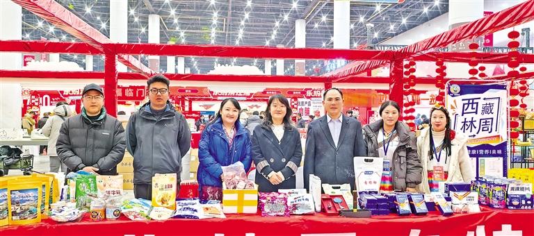 江蘇省淮安市文旅嘉年華·樂購清江浦年貨大集上西藏自治區(qū)林周縣農(nóng)特產(chǎn)品展銷區(qū)。 記者 央金 攝