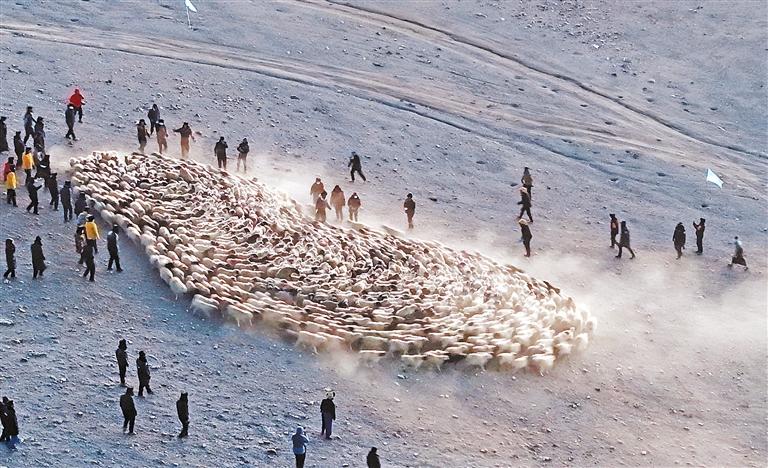 推瓦村牧民將羊群聚攏,準(zhǔn)備轉(zhuǎn)場(chǎng)?! ?/p>