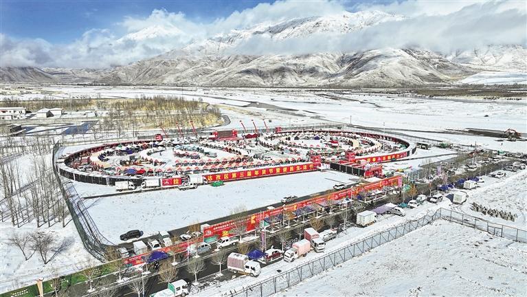 拉薩市達孜區(qū)第三屆年貨節(jié)現(xiàn)場(無人機拍攝)。 記者 鹿麗娟 攝
