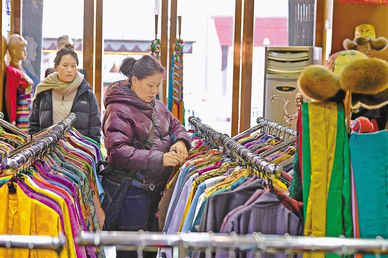 市民在藏裝店選購新衣。 記者 唐斌 攝
