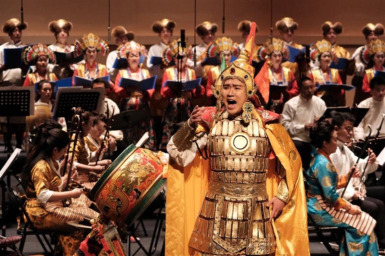 新年戲曲音樂會精心挑選了大量深具人文內(nèi)涵和情感深度的優(yōu)秀劇目,將藏戲經(jīng)典唱段、念白及群鼓伴奏與現(xiàn)代舞臺藝術(shù)相結(jié)合,為觀眾呈現(xiàn)了一場視覺與聽覺的雙重盛宴。