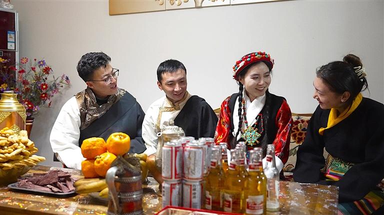 記者了解到,白寶玉的母親今年也來到拉薩。問起她是否適應藏族新年的氛圍,白寶玉開心地說:“這里的親朋好友對我們十分熱情,沒有那么多講究和規(guī)矩。這樣的氛圍讓身為外地人的我和母親都感到十分溫暖。”