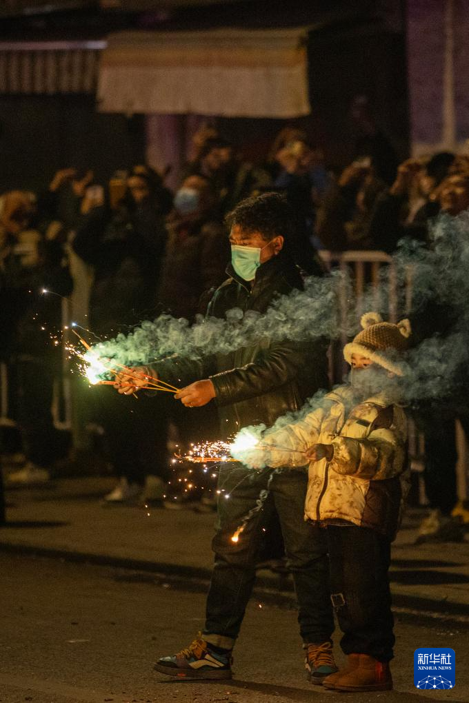 拉薩市民在大街上燃放煙花(2月27日攝)。新華社記者 姜帆 攝