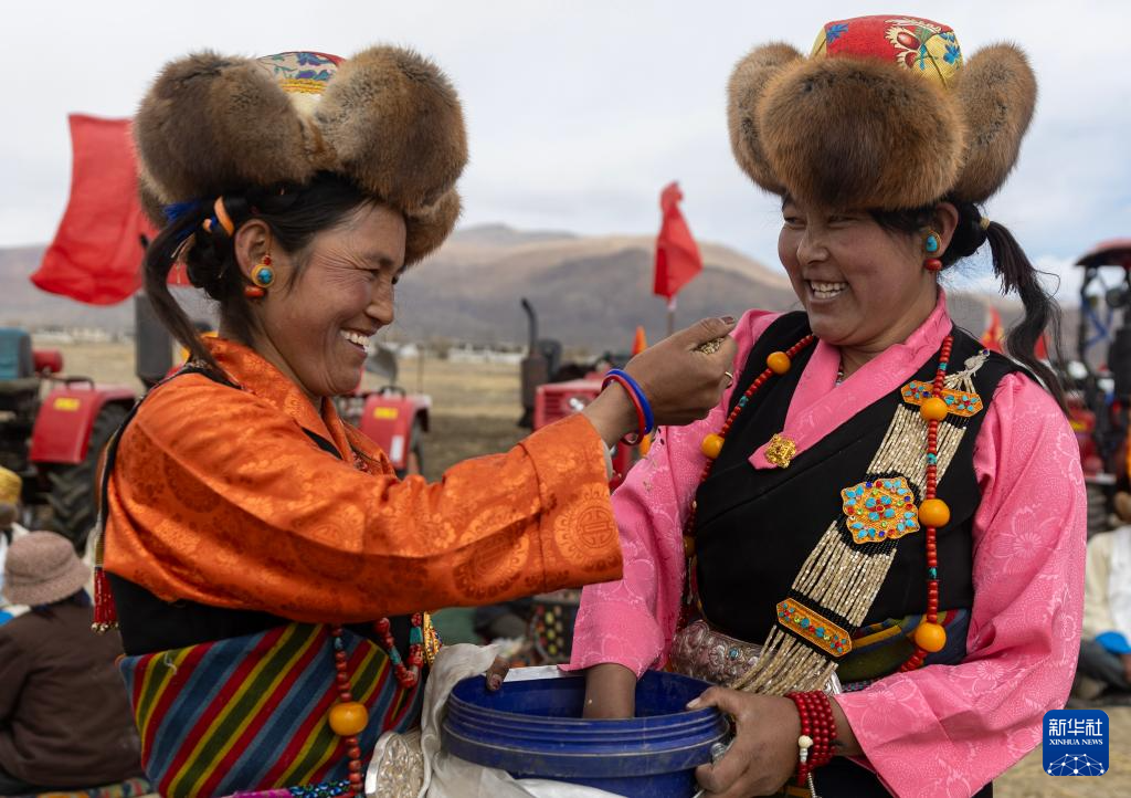 3月16日,西藏日喀則市拉孜縣曲下鎮(zhèn)土林村春耕儀式現(xiàn)場。新華社記者 姜帆 攝