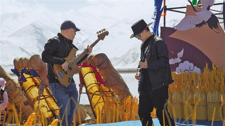 圖為天杵樂隊(duì)演唱《長(zhǎng)壽六寶》。林周融媒提供
