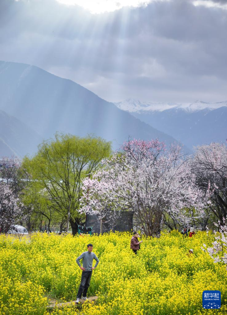 3月29日,游客在林芝市巴宜區(qū)嘎拉村賞花游玩。新華社記者 齊芷玥 攝 ??