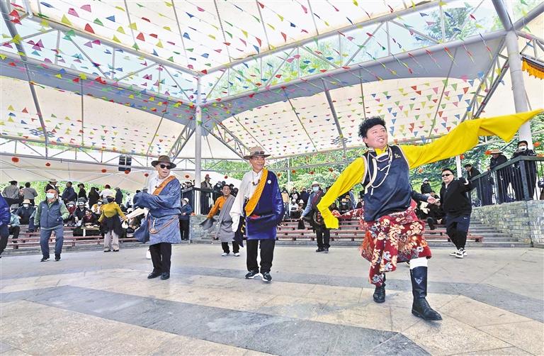 位于拉薩河畔的中華文化公園里,陽光燦爛、微風(fēng)輕拂,蜿蜒交錯(cuò)的步道上,隨處可見市民休閑娛樂的身影。