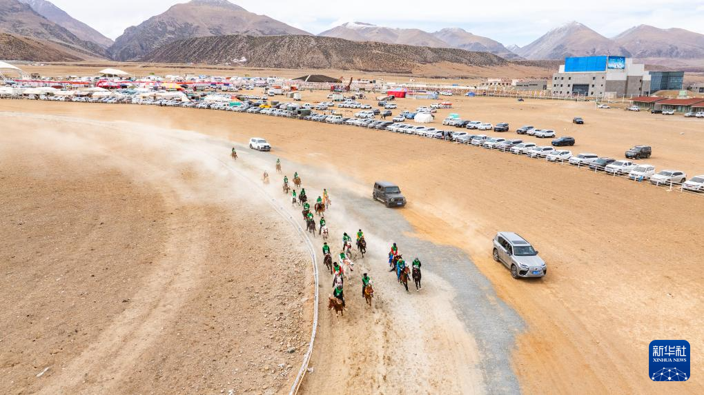 4月27日,第二屆東日馬超邀請(qǐng)賽比賽現(xiàn)場(chǎng)(無(wú)人機(jī)照片)。新華社記者 晉美多吉 攝