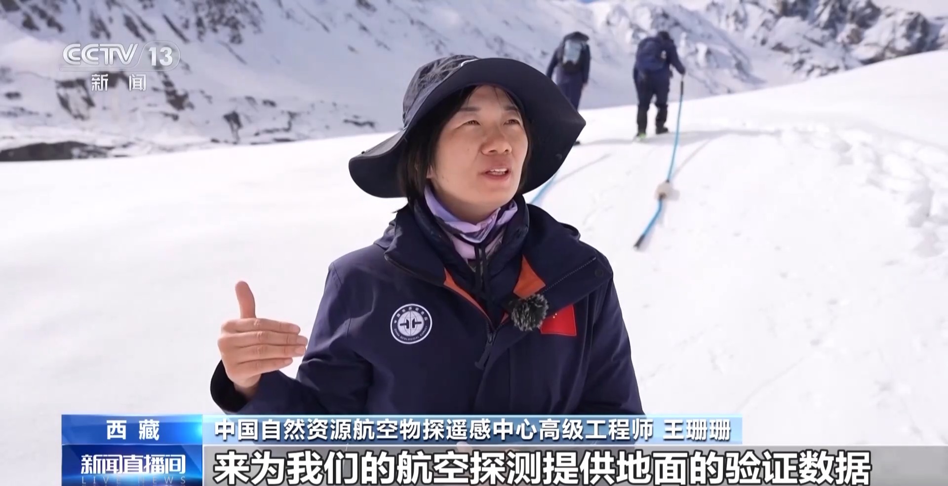 中國(guó)自然資源航空物探遙感中心高級(jí)工程師 王珊珊:我們現(xiàn)在在做的是冰川厚度的探地雷達(dá)測(cè)量,天線采用的是繩狀的結(jié)構(gòu),所以比較柔軟,跟地形的貼合度比較好,在冰上的作業(yè)難度就會(huì)大大減小。我們拿到地面的探測(cè)數(shù)據(jù)之后,為航空探測(cè)提供地面的驗(yàn)證數(shù)據(jù)。