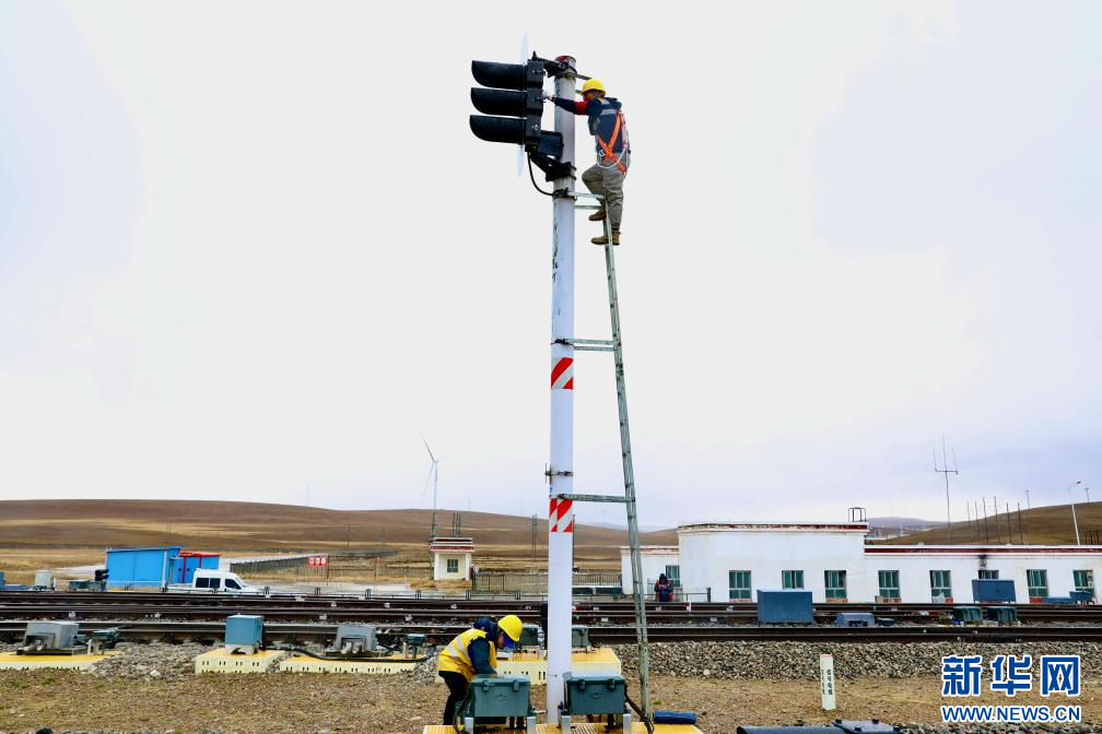 海拔4513米的那曲火車站,共有信號機108架。列車的安全運行離不開信號設備的指引,負責此次信號機燈盤更換的侯曉東和工友們被大家親切地稱為“點燈人”。