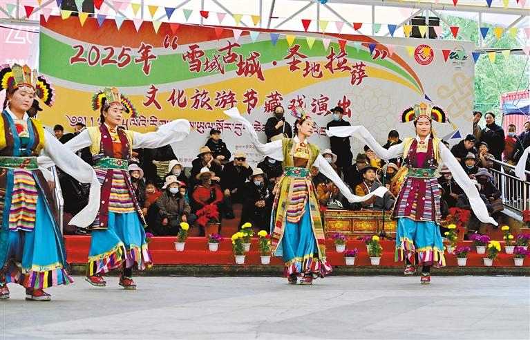 近日,“雪域古城·圣地拉薩”文化旅游節(jié)非遺主題活動(dòng)在拉薩宗角祿康公園內(nèi)開展,現(xiàn)場人潮涌動(dòng)。非遺藏戲演員身著華服,以高亢唱腔演繹《朗薩雯蚌》選段,觀眾圍坐沉浸于雪域藝術(shù)魅力。非遺展銷區(qū)陳列著木雕、牛皮制品等傳統(tǒng)手工藝品?;顒?dòng)全面展現(xiàn)了非遺保護(hù)傳承與利用的新進(jìn)展和新成效。記者 唐斌 攝