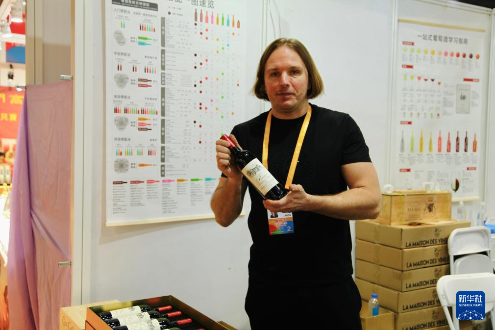 5月16日,法國酒商杰夫瑞展示紅酒展品。新華社記者潘一景 攝