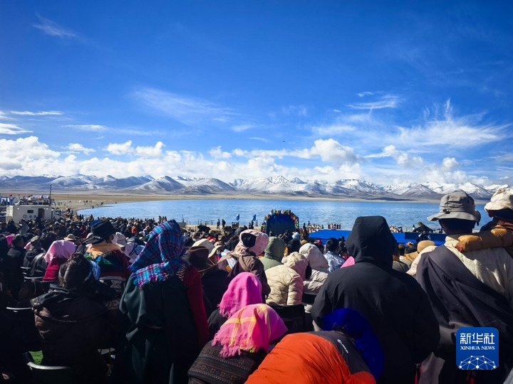 “開湖日”現(xiàn)場(chǎng)格外熱鬧,不僅有取水等“開湖”儀式,還有精彩表演和非遺體驗(yàn)。“我第一次來納木錯(cuò),真幸運(yùn)能趕上‘開湖’盛景!”來自四川成都的游客白丹特意穿上了藏族傳統(tǒng)服裝來拍照。