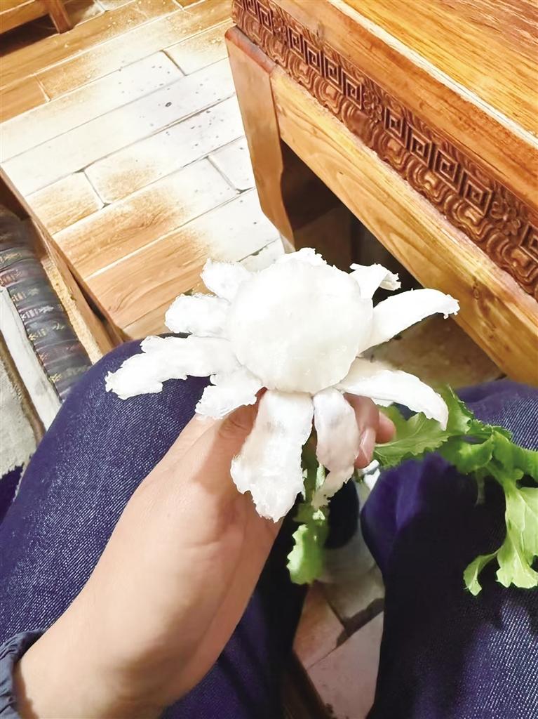 記者注意到,為了能賣個(gè)好價(jià)錢,街頭的不少商販把“妞瑪”清洗得干干凈凈的,還會(huì)幫顧客剝皮?!版が敗泵磕瓴貧v4月中旬成熟,本地很多人都喜歡吃,算是一種夏日解渴美食,因此銷量也很不錯(cuò)。