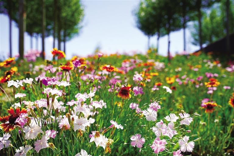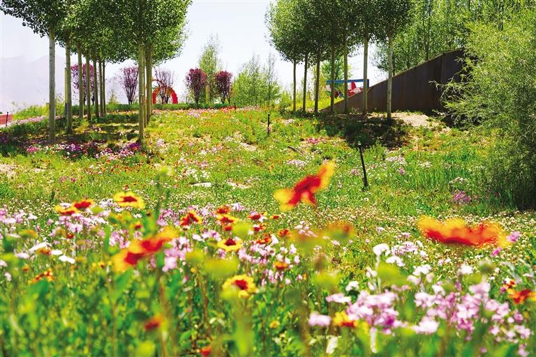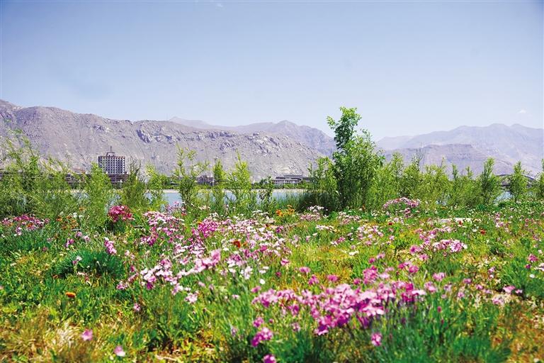 六月的拉薩,陽光正好。澄澈藍天如洗,高遠而明亮。柳梧大橋下的濱河公園,河畔草地鋪滿各色小花,紅的明艷、粉的柔和、紫的淡雅,肆意綻放在綠意間,仿佛步入印象派大師莫奈的畫布之中。成片盛開的各類花卉爭奇斗艷,五彩斑斕的花朵沿著河畔鋪展開來,形成一片片絢麗的花海。不同顏色的花朵相互交織,隨風搖曳,與藍天白云、碧綠的河水、遠處綠意盎然的南山相映成趣,構成了一幅花海畫卷。