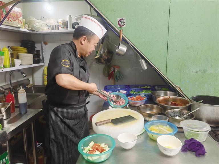 在事業(yè)發(fā)展過程中,王林生深知不斷學(xué)習(xí)的重要性。只有不斷學(xué)習(xí),才能取得進(jìn)步。一有空,他就和同行們交流新菜品、新創(chuàng)意,分享彼此的經(jīng)驗(yàn)和心得。晚上,等孩子們睡了,王林生也會(huì)坐在電腦前自學(xué)經(jīng)營管理課程?!白霾惋嬀偷貌粩嗾垓v,不能原地踏步?!彼χf。