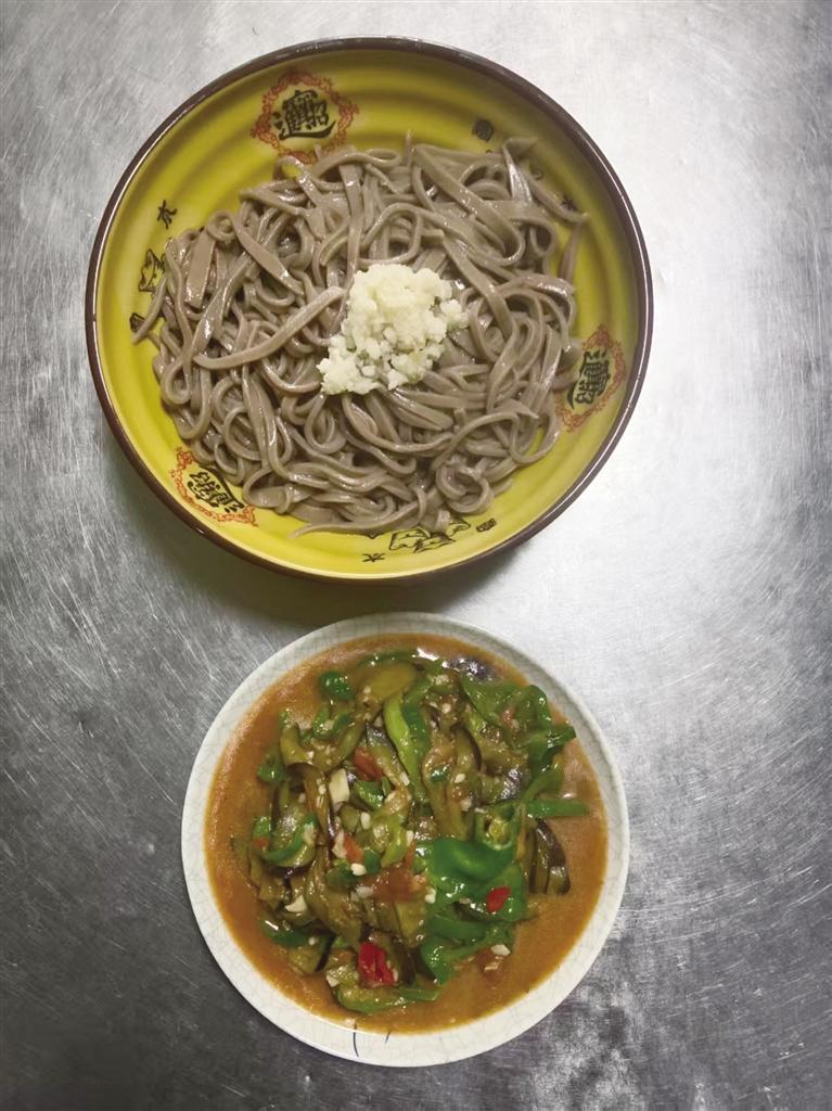走進(jìn)麥香面莊,幾位客人熱烈地談?wù)撝ぷ骱蜕睿哉Z間滿是熱情。老板娘笑容滿面地招呼著客人。廚房?jī)?nèi),王林生則套著圍裙,燒水、下面、澆湯、加菜,動(dòng)作麻利得像練過千百遍。