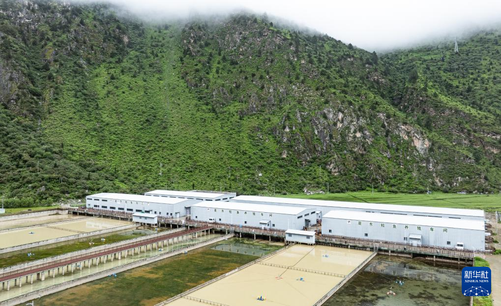 這是西藏高峰生態(tài)科技有限責(zé)任公司的亞東鮭魚養(yǎng)殖產(chǎn)業(yè)園(6月19日攝,無人機照片)。新華社記者 丁增尼達 攝 ??