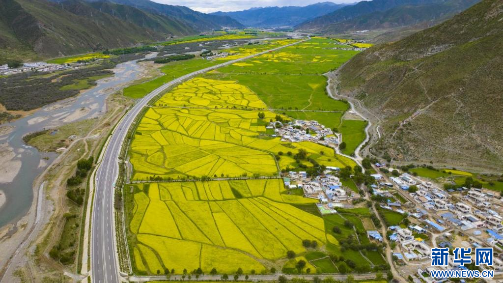 在高原的廣袤天地間,拉薩市墨竹工卡的油菜花海如同一幅金色畫卷,在盛夏時(shí)節(jié)緩緩展開 。