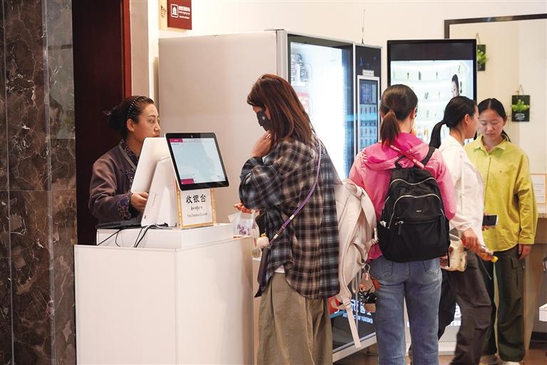 游客正在排隊結(jié)賬。