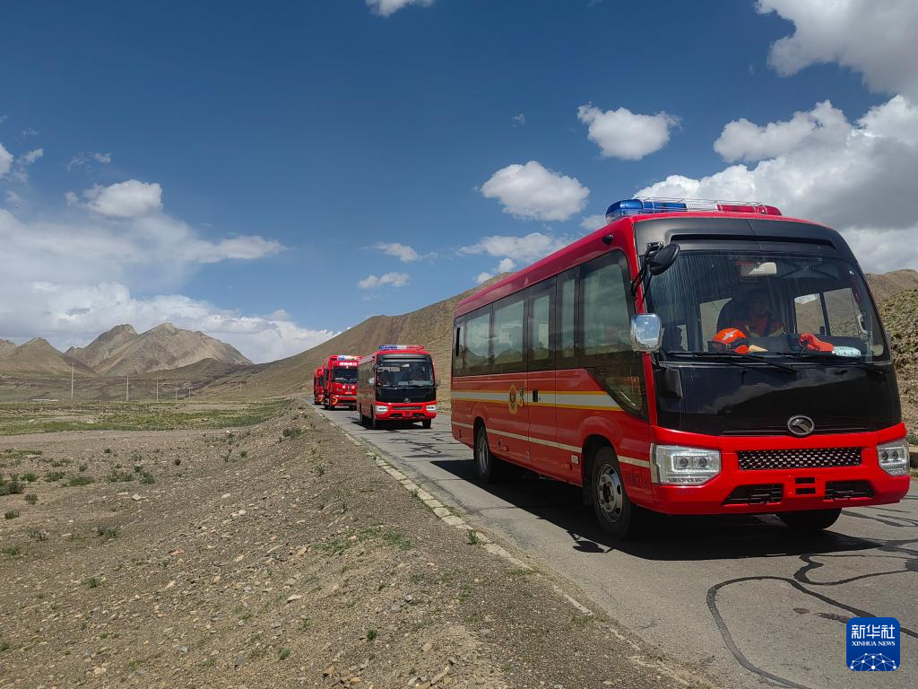 7月8日,西藏森林消防總隊(duì)日喀則大隊(duì)的救災(zāi)車隊(duì)在趕往吉隆口岸的路上。新華社發(fā)