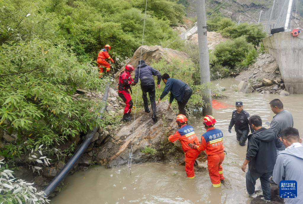 7月8日,西藏消防救援總隊(duì)救援人員在救災(zāi)現(xiàn)場搭建救援通道。新華社發(fā)(徐達(dá)富攝)??