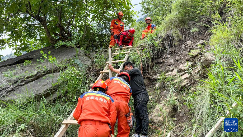 7月8日,西藏消防救援總隊(duì)救援人員在救災(zāi)現(xiàn)場疏散被困人員。新華社發(fā)(徐達(dá)富攝)?