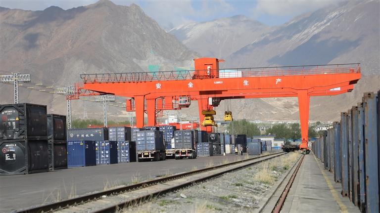圖為拉薩西站貨場龍門吊正在作業(yè)。 記者 文鳳 通訊員 周悅翔 攝