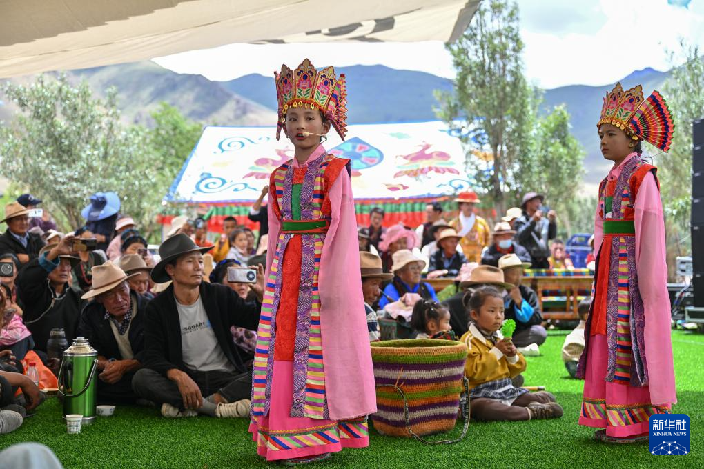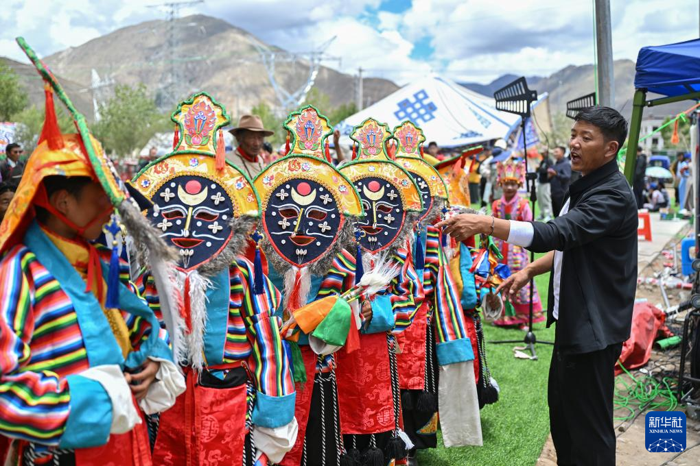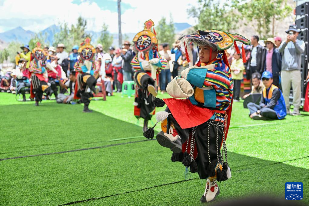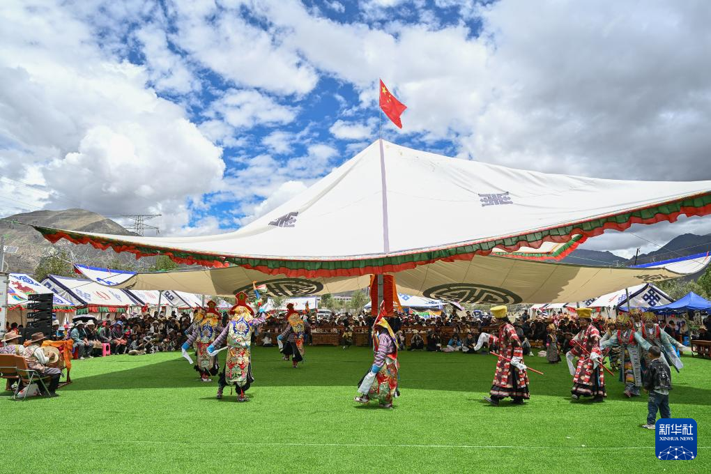 7月16日,民間藏戲表演隊(duì)在南木林縣非遺公園內(nèi)表演湘巴藏戲。新華社記者 李鑫 攝 ??