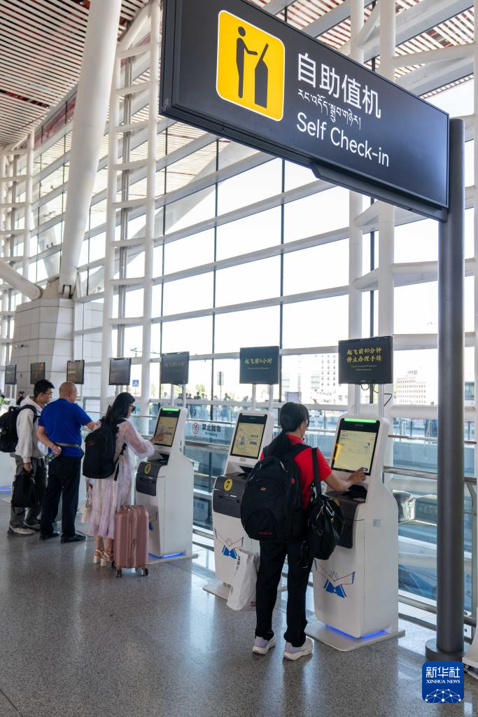 7月18日,旅客在拉薩貢嘎國際機(jī)場自助值機(jī)。新華社記者 旦增尼瑪曲珠 攝?