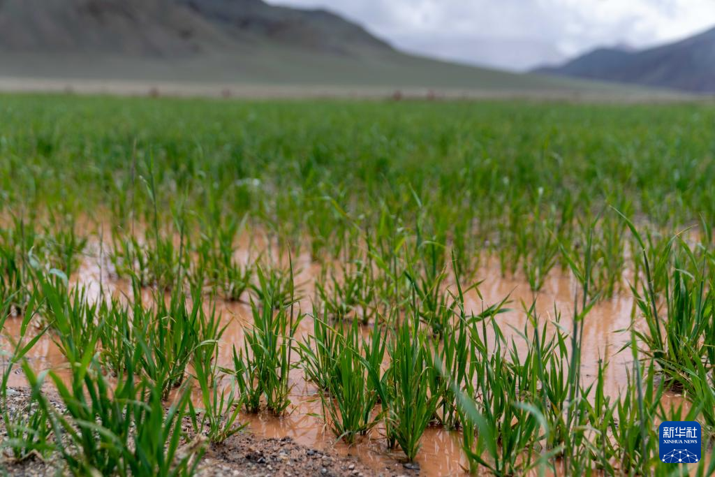 這是7月20日在西藏阿里地區(qū)革吉縣文布當(dāng)桑鄉(xiāng)拍攝的人工種草基地。新華社記者 旦增尼瑪曲珠 攝 ??