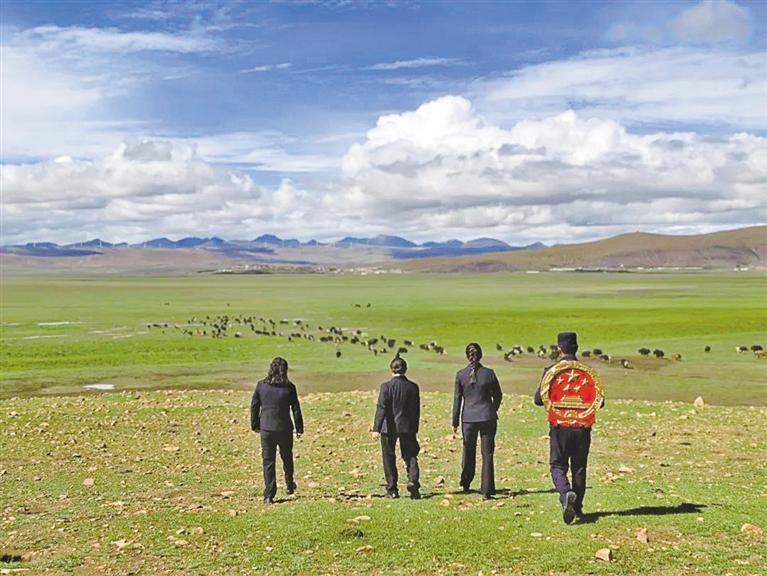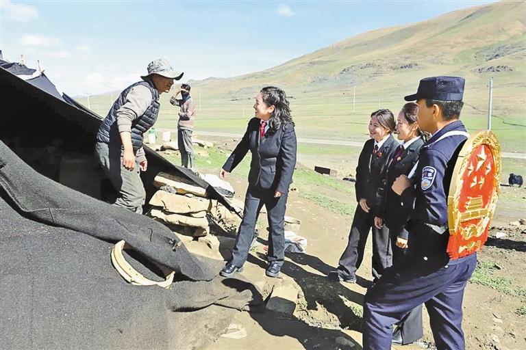 措美縣人民法院干警前往群眾放牧點。