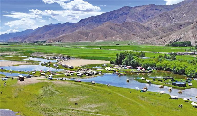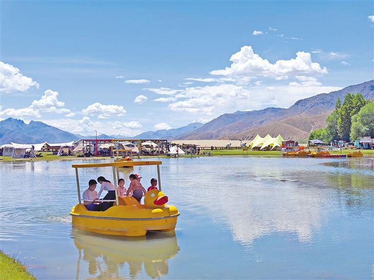 楚貴林卡位于日喀則市桑珠孜區(qū)東嘎鄉(xiāng)楚貴村。2019年初,青島援藏組規(guī)劃盤(pán)活村集體用地,打造以自然生態(tài)景觀、休閑度假旅游及異域農(nóng)耕民俗文化體驗(yàn)為主題,融合當(dāng)?shù)匚幕瘍?nèi)涵的“楚貴村生態(tài)旅游度假區(qū)”項(xiàng)目。項(xiàng)目自2022年啟動(dòng)以來(lái),隨著運(yùn)營(yíng)漸趨成熟,林卡休閑游樂(lè)設(shè)施逐年豐富。如今,這里設(shè)有咖啡休閑館、山地摩托、真人CS、游船、騎馬等多個(gè)傳統(tǒng)與現(xiàn)代結(jié)合的項(xiàng)目,受到游客青睞。