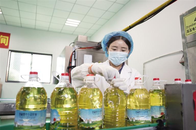 2023年建成的小油菜榨油廠(二期)總投資3000萬元,配備吹瓶機、灌裝機等全套現(xiàn)代化設備。從一期半自動生產(chǎn)實現(xiàn)跨越式升級,達成“全自動標準化生產(chǎn)”。次旦央珍介紹:“目前,我們廠年均加工能力可覆蓋近3萬畝油菜籽,從 ‘一粒油菜籽’到‘一桶精制油’ 的轉(zhuǎn)化效率大幅提升,為產(chǎn)業(yè)規(guī)?;a(chǎn)業(yè)化發(fā)展提供了堅實的產(chǎn)能支撐?!?/p>