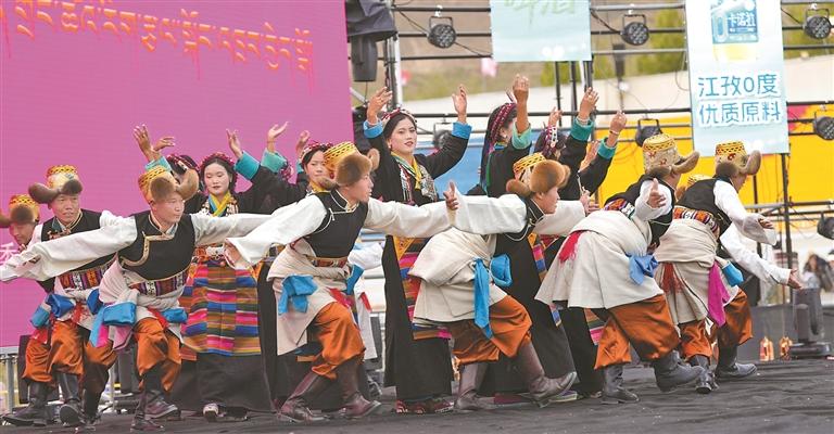 開幕式上,100匹駿馬踏著鼓點(diǎn)奔騰而來。騎手們手持國旗,馬鬃飛揚(yáng),金黃的青稞穗與潔白的哈達(dá)交織成畫。緊隨其后的方隊(duì)演繹著傳統(tǒng)與現(xiàn)代的對話,深情表達(dá)了江孜人民對黨的無限感恩、對祖國的無限熱愛、對西藏繁榮發(fā)展的美好祝愿。