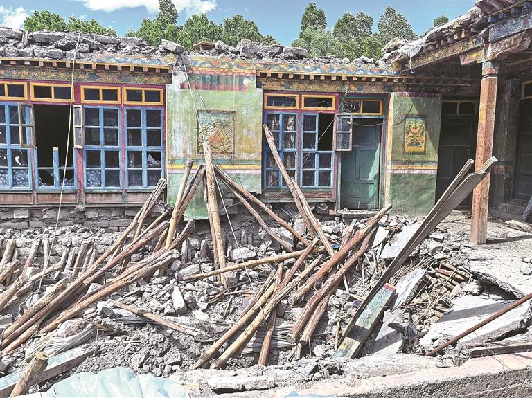 圖為索朗旺堆家已經(jīng)坍塌的老房子。 (圖片由受訪(fǎng)者提供)