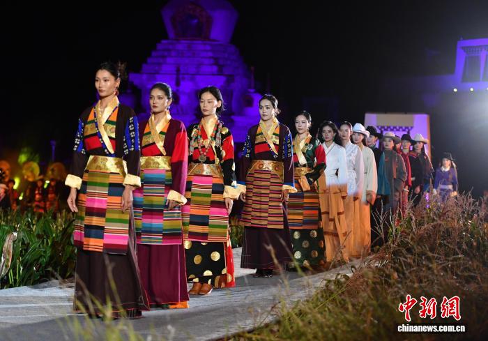 20日晚,一場田園中的走秀讓大眾再次感受到鄉(xiāng)城女性最具代表性的民族服飾“瘋裝”的文化內(nèi)涵和動人魅力。伴隨著夜幕下的絢麗燈光,當(dāng)?shù)夭刈宕迕窈蛠碜郧嗪?、甘肅、西藏等地的藏族模特身著盛裝,演繹一場融合傳統(tǒng)與現(xiàn)代的“民族時尚秀”。