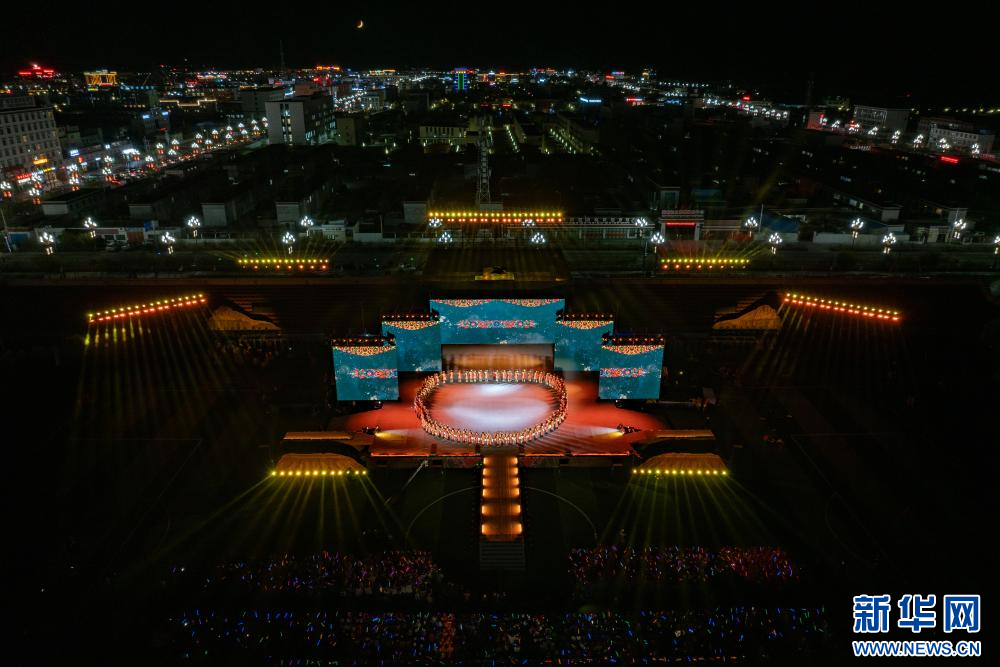 9月26日,第九屆象雄文化旅游節(jié)開幕式現(xiàn)場(無人機照片)。新華網(wǎng) 旦增努布 攝