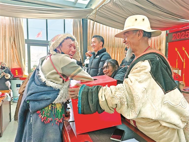 圖為熱鬧喜慶的日土縣熱幫鄉(xiāng)扎普村分房抽簽現(xiàn)場。 通訊員 次仁拉宗 攝