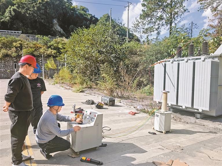 圖為國網(wǎng)察隅縣供電公司工作人員正在對變壓器進(jìn)行試驗調(diào)試。記者 劉楓 攝