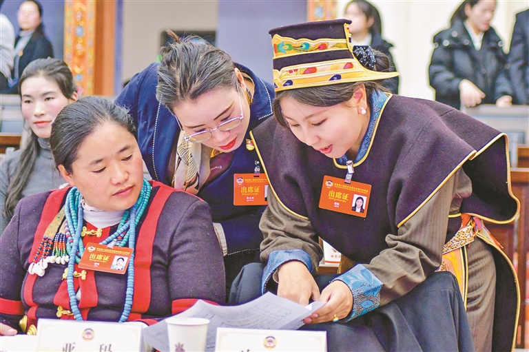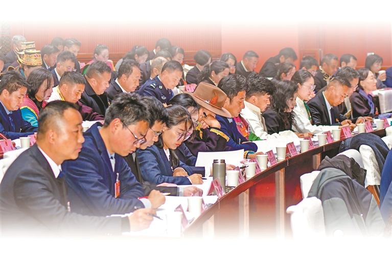 林芝市人大代表認(rèn)真聆聽政府工作報告。