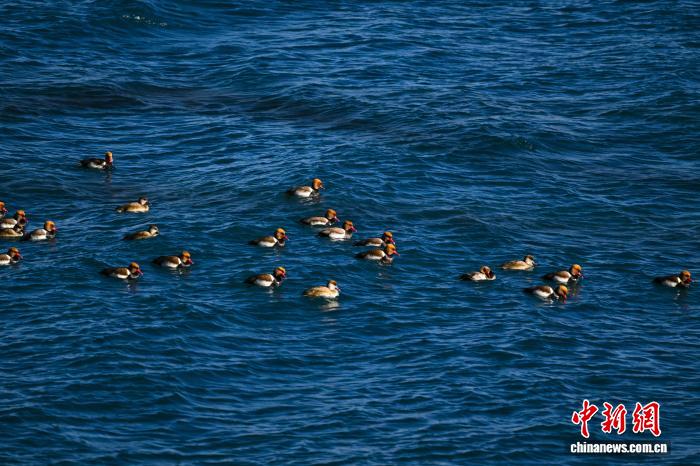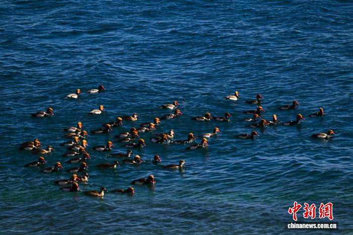 圖為在羊卓雍錯(cuò)越冬的赤嘴潛鴨。中新社記者 貢嘎來(lái)松 攝
