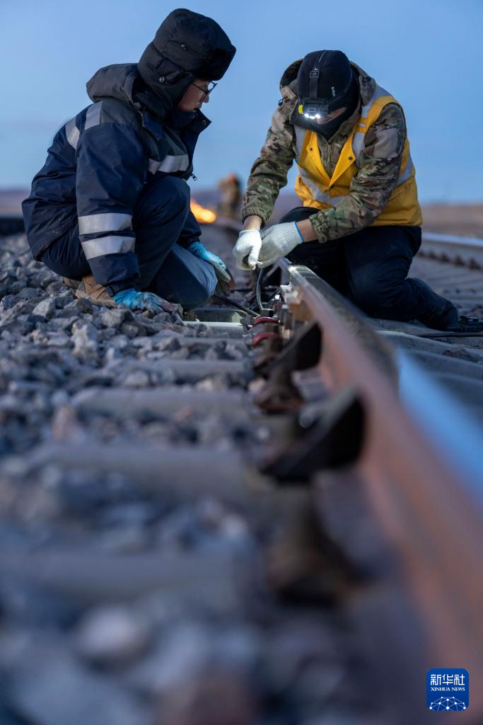 1月23日,扎加藏布信號(hào)工區(qū)信號(hào)工成格樂(左)和同事在整治軌道電路箱盒引接線。新華社記者 旦增尼瑪曲珠 攝