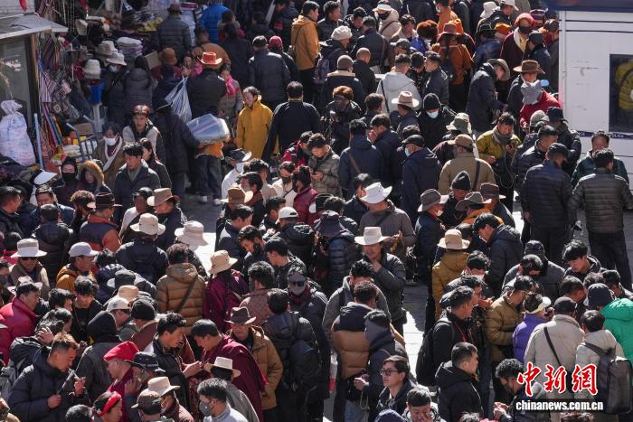 1月27日,藏歷新年將至,拉薩街頭年味漸濃。城區(qū)街巷燈籠高掛,市民忙著采購酥油花、香布、切瑪盒、吉祥羊頭、藏文春聯(lián)等特色年貨,各式新年好物琳瑯滿目,處處洋溢著喜慶祥和的節(jié)日氛圍,人們以傳統(tǒng)方式迎接新年到來。圖為大昭寺廣場燈籠高掛,年味漸濃。貢確 攝