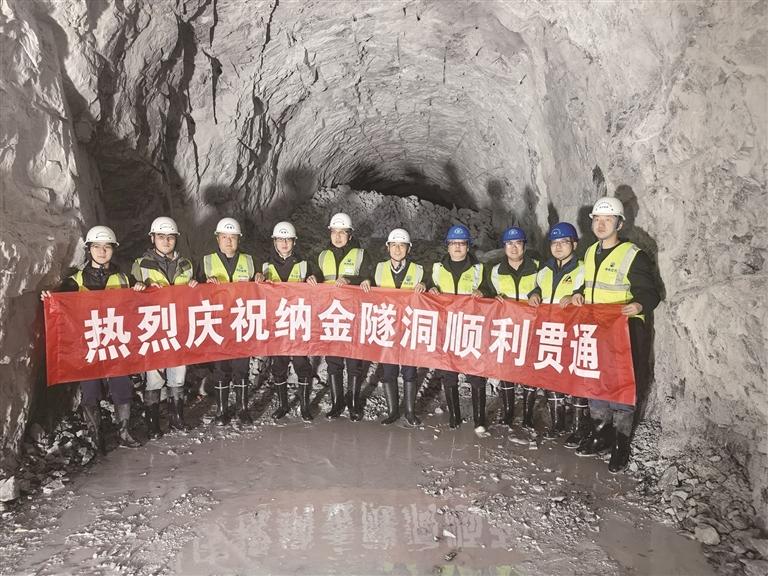 納金隧洞全長5036米,成型斷面為城門洞形,寬3.0米、高3.7米,采用鉆爆法從兩端相向開挖。隧洞穿越中高山地貌,最大埋深約640米,隧洞圍巖以Ⅲ類為主,Ⅳ、Ⅱ類次之。自開工以來,項(xiàng)目團(tuán)隊(duì)科學(xué)組織、精細(xì)管理,克服了高海拔隧洞產(chǎn)生的巖爆和集中涌水等惡劣地質(zhì)環(huán)境,嚴(yán)格采取相應(yīng)支護(hù)與封堵措施,連續(xù)5個(gè)月單側(cè)工作面月進(jìn)尺超過200米,最高月進(jìn)尺245米。后續(xù)納金隧洞工程將轉(zhuǎn)入隧洞混凝土襯砌施工,項(xiàng)目部將提前謀劃,精心組織,保證施工質(zhì)量與安全,做好轉(zhuǎn)序工作,確保納金隧洞首倉襯砌混凝土按計(jì)劃開倉澆筑。