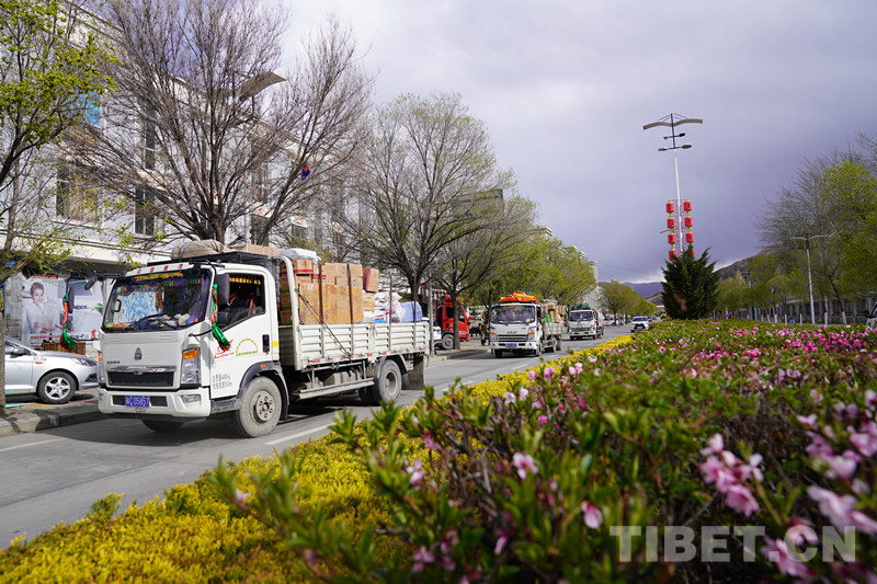 圖為農(nóng)民運輸連隊在山南市區(qū)運貨中